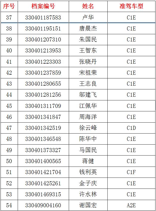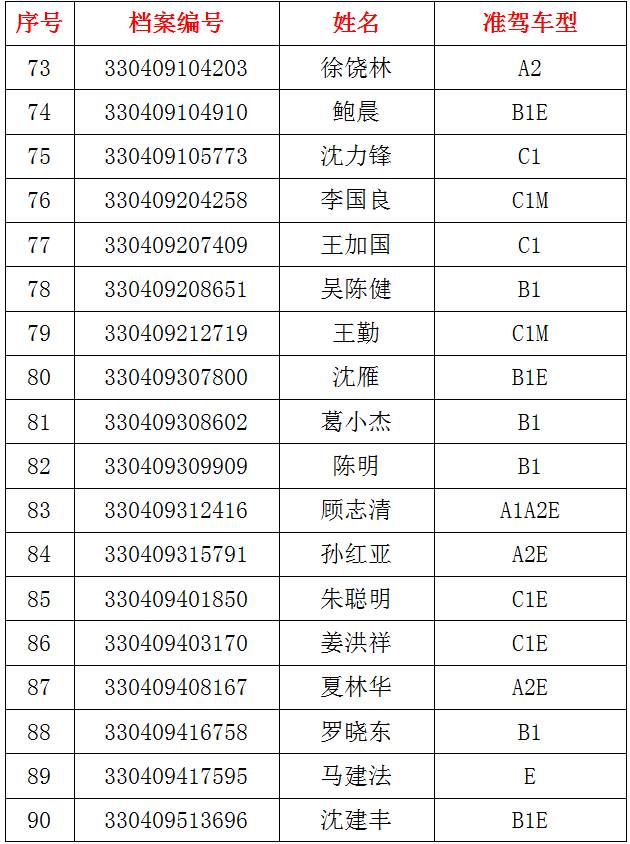 下列機動車駕駛人在一個記分周期內累積記分已達到12分,且拒不參加公安機關交通管理部門通知的學習和考試。根據(jù)《中華人民共和國道路交通安全法實施條例》第二十五條的規(guī)定,現(xiàn)已公告其機動車駕駛證停止使用。上述機動車駕駛人在接受學習并考試合格、清分后,其被公告停止使用的機動車駕駛證方能自行恢復。